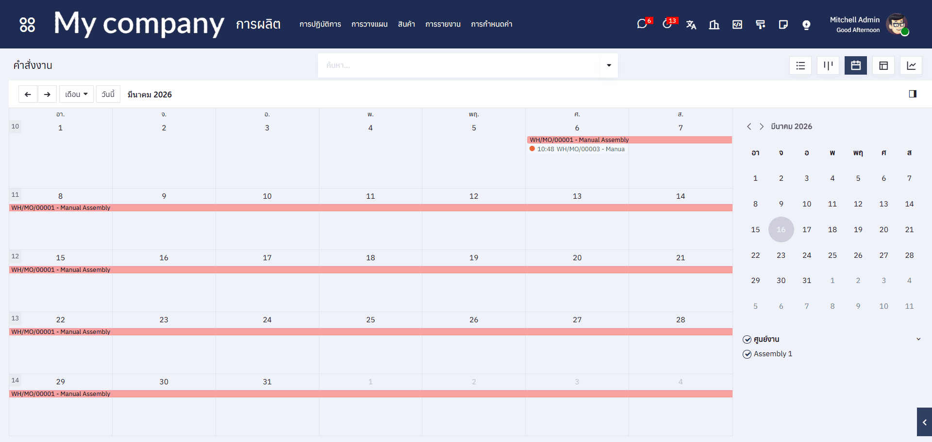 จัดการสูตรการผลิต (BOM) ซ้อนกันหลายชั้น วางแผนใบสั่งผลิต (MO) ติดตามสถานะรายขั้นตอน